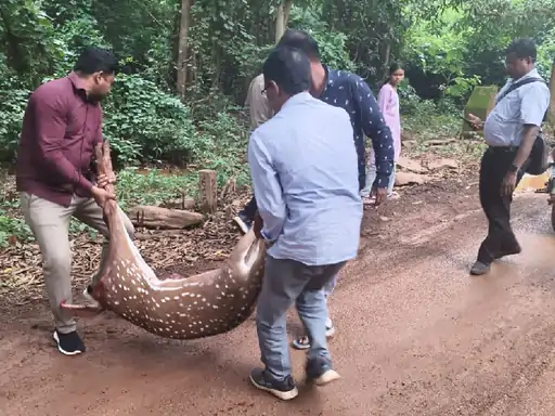 संभावित घटना: 18 जुलाई की सुबह, बस्तर के कांगेर घाटी राष्ट्रीय उद्यान के भीतर से एक चीतल घायल अवस्था में NH‑30 सड़क के पेदावाड़ा चौक पर मिला। चीतल की गर्दन में तीर के घाव स्पष्ट हैं, जिससे यह स्पष्ट है कि यह शिकार था। घायल अवस्था में चीतल की मौत हो गई जब वह सड़क तक पहुंचा। वन विभाग और NP के अधिकारियों को सूचना दी गई थी।