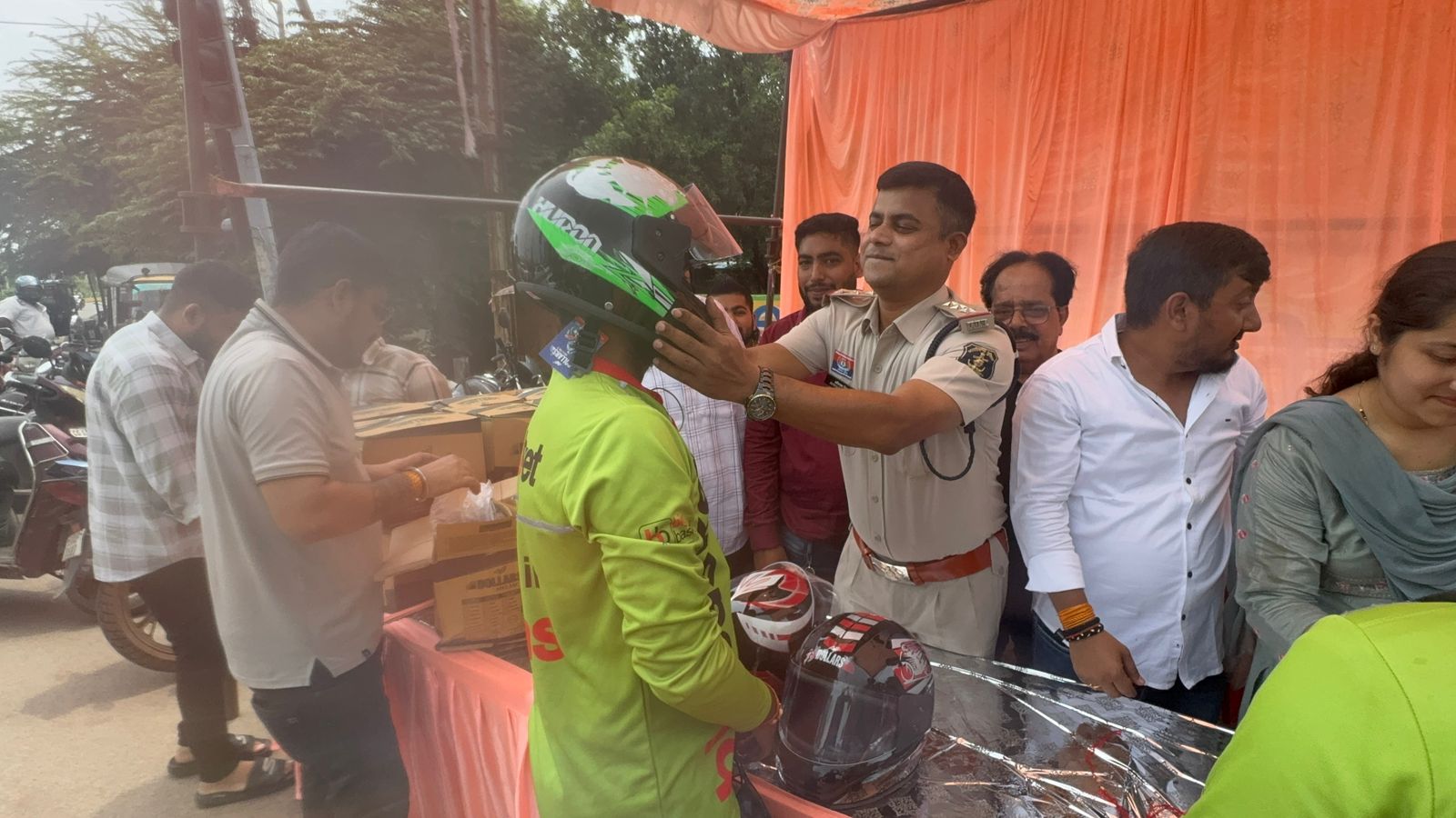 रक्षाबंधन पर बहनों ने भाइयों को बांधी राखी, सुरक्षा के प्रतीक स्वरूप बांटे हेलमेट